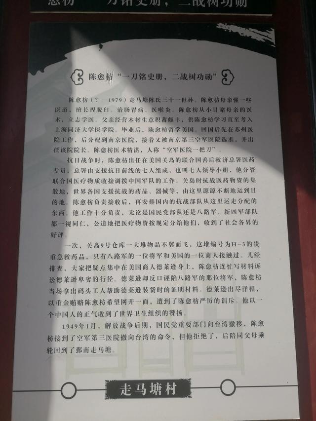 据历史记载,它始建于北宋端拱年间(公元988年),当年陈氏从江苏长洲迁此歇脚居住,至今已逾千年。当时长洲进士陈矜任明州知府,死后葬于茅山,其子为父守陵,带家眷定居走马塘,遂成为今走马塘人的祖先,至今已传38代。今天存放在宁波天一阁的陈氏家谱,清楚详细地记载了这个家族的千年变迁。
