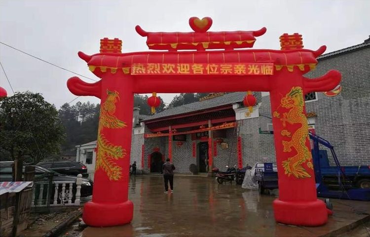 在祠堂进门处搭建拱门热烈欢迎各位宗亲代表,前来参加义门陈端公文化基金会成立大会。