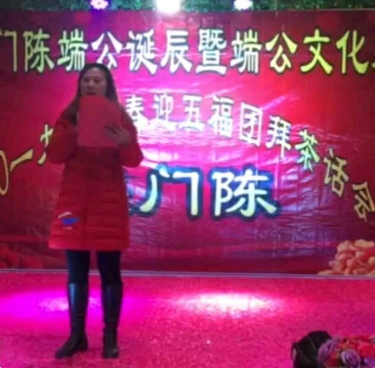上图为主持人陈玲子宣布义门陈端公文化基金会成立大会开始。