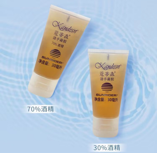 分别含70%酒精和30%酒精的蔻蒂森洁手凝胶。