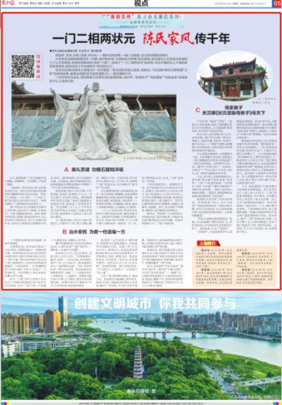 查阅史料,我们很难还原立体丰满的历史人物,但现存不多的文字及全国各地保留下来的历史遗迹却为我们勾勒出勤政爱民、智慧坚毅、躬身力行、恭谨清廉的“三陈”形象。