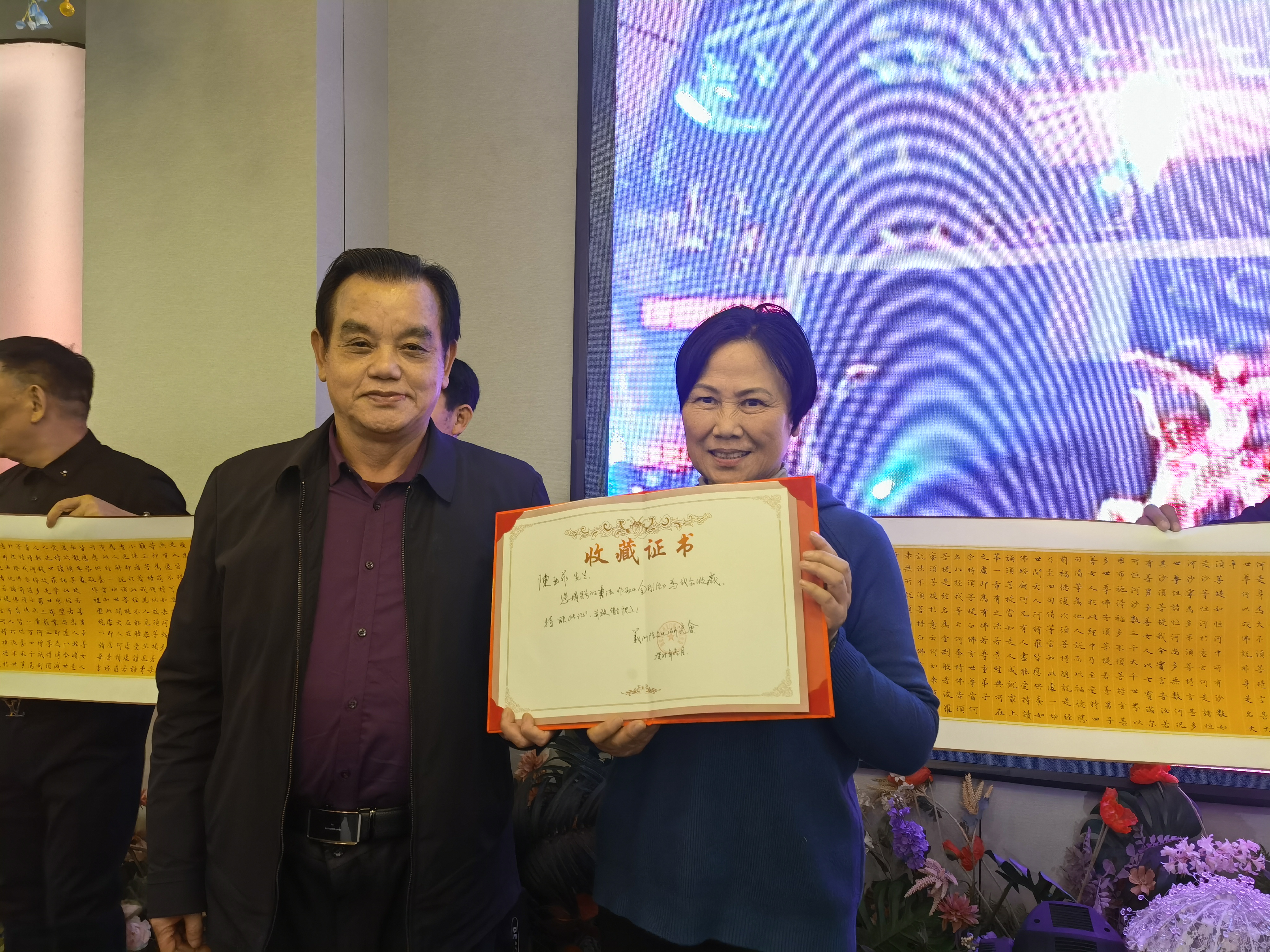 在故居内,我们还欣赏到了由陈亚菲先生捐赠的书法作品《金刚经》。陈亚菲先生的善举受到了我们的高度赞扬。这幅作品将“义门陈”的精神以书法的形式展现得淋漓尽致,为我们的旅程增添了更多的文化色彩。为了感谢陈亚菲先生的慷慨捐赠,德安义门陈联谊总会特颁发收藏证书,并致以深深的谢意。