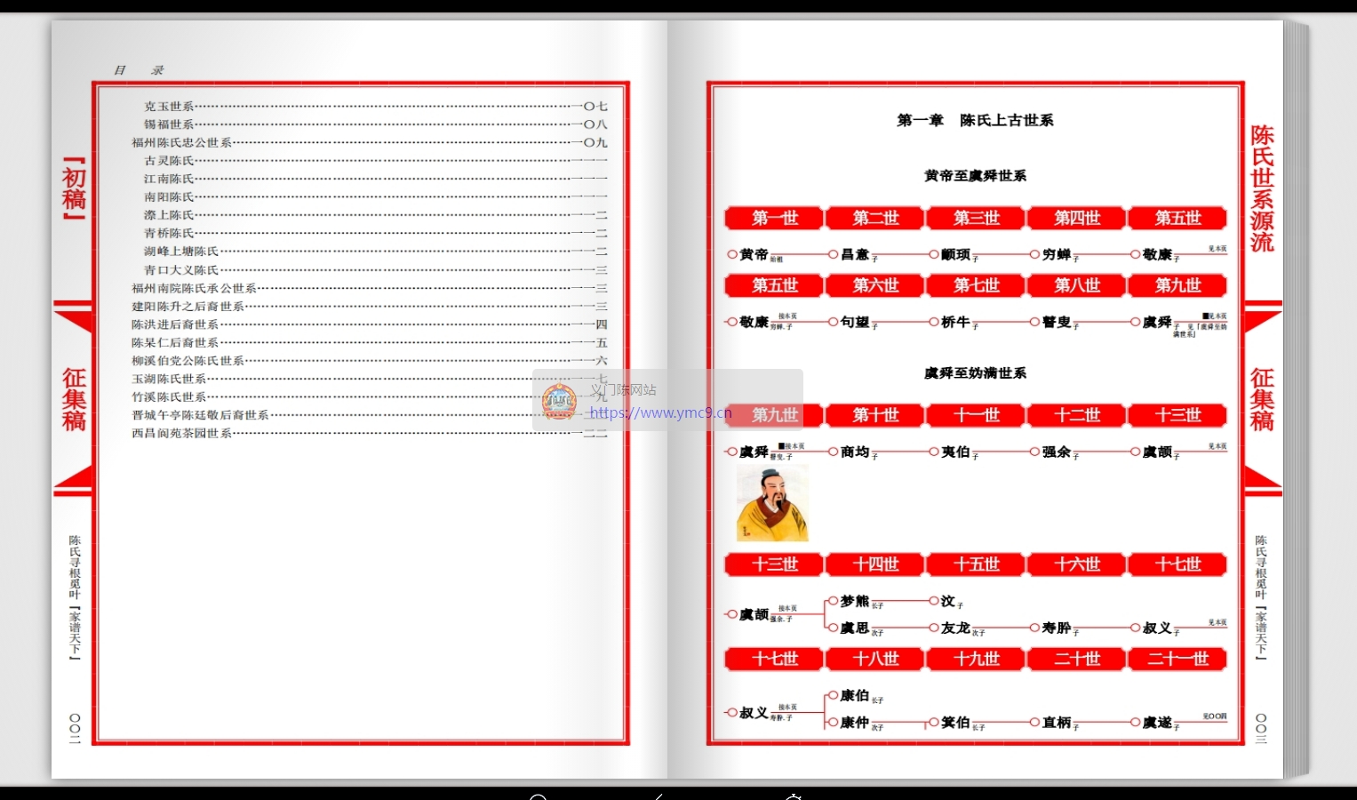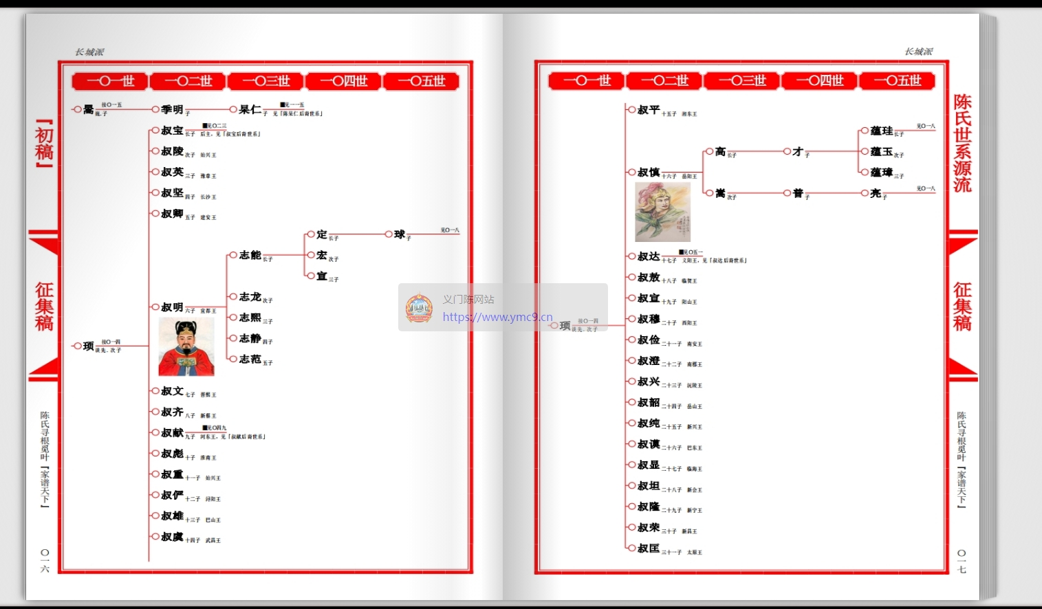 陈氏世系源远流长,远祖可追溯至黄帝,血缘先祖为舜帝。周武王封胡公妫满于宛丘,立陈国,妫满遂成陈姓始祖。陈氏繁衍昌盛,历代英才辈出,遍及海内外。其世系脉络清晰,体现了中华民族悠久的历史与文化传承。