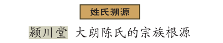 此后,陈姓子孙为陈姓定立堂号为“颍川堂”,提到“颍川堂”便是陈姓世系的象征。陈姓始于颍川,陈氏源于宛丘(今河南淮阳),旺于固始(今河南固始县)、盛于颍川(今河南长葛),南开闽漳,遍及全球。