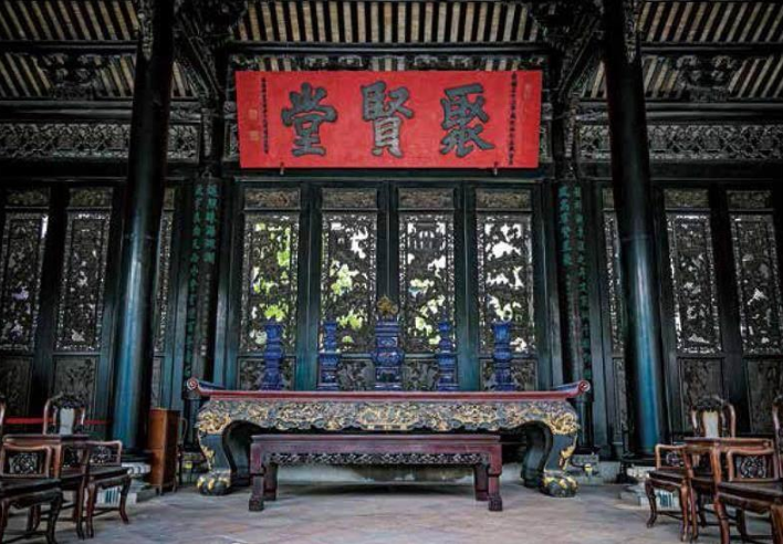 上图:广州陈氏书院主堂“聚贤堂” 供图/视觉中国下图:陈氏书院内古朴的建筑和浓厚的书香气息 供图/视觉中国