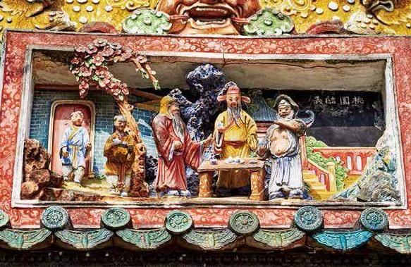 广州陈氏书院灰塑人物脊饰“桃源结义”