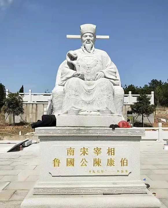 在寂静肃穆的山林间,占地近百亩之陵园,历时5年,耗资800余万,终成规模。威严庄重的陵园有三进,呈阶梯式。拾级而上,高高端坐在椅的陈康伯石像,帽衣平整,髯须飘飘,目光慈祥,仿若深情眺望祖籍的山山水水,又仿若倾听这盛世太平的宁静。