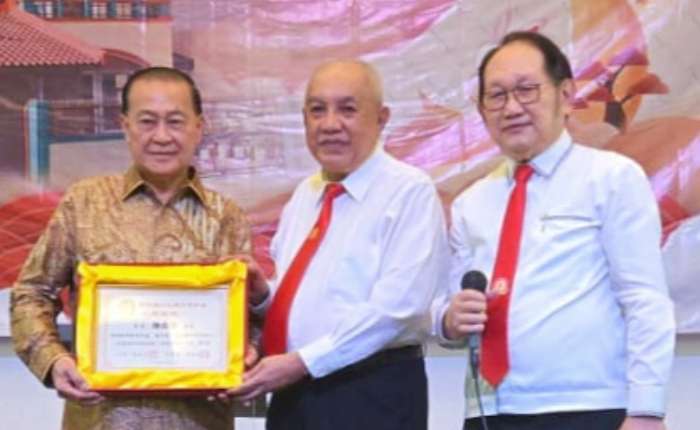 祭毕,大家前往一乐园酒楼聚餐联欢,藉敦族谊。联欢会上,雅加达陈氏宗亲会诸领导向年老宗长颁发添福添寿敬老尊贤红包,以及在校成绩优异奖学金等节目。