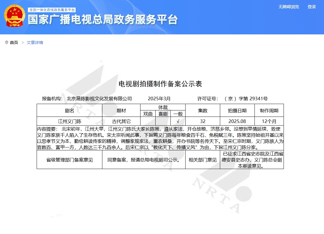 🎉特大喜讯!《江州义门陈》电视剧正式获批,千年义门文化迎来高光时刻!