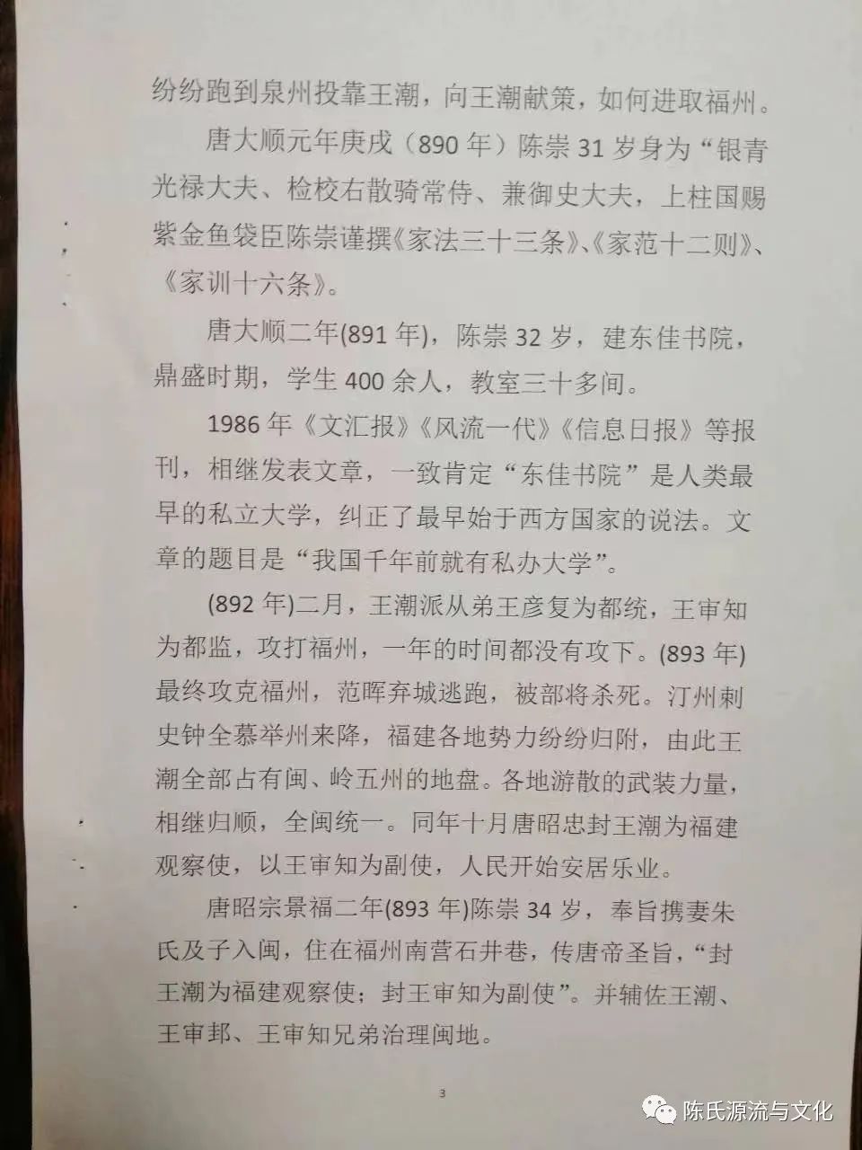 唐大顺二年(891年),陈崇32岁,建东佳书院,鼎盛时期,学生400余人,教室三十多间。