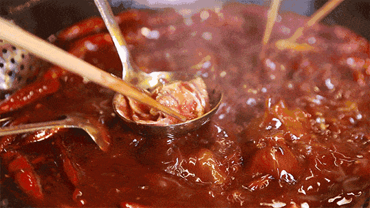 看着热气腾腾的锅底
