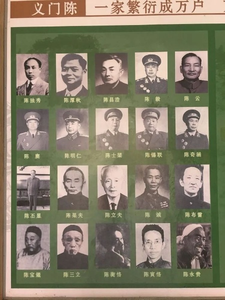 由于担心日益壮大的义门陈会影响社会稳定,公元1062年文彦博、包拯等大臣纷纷上书建议分析义门陈。宋仁宗以“义门陈孝义传家,分析各地教化天下”的理由,将义门陈分析至全国各地。根据宋仁宗的御赐编号,义门陈家族财产列为291份,人口分流至江西、河南、浙江、湖北、广西、江苏、广东、福建、山东、上海、天津等16个省125个县市。即使分析各地,义门陈的家风依然影响着后人不断前进,建功立业。据查,中国共产党的著名人物陈独秀、陈毅、陈云、陈赓,国民党元老陈立夫、陈果夫、国民党将领陈诚等,都是江州义门陈氏分析到各地支派的后代。“陈门五杰”陈宝箴、陈三立、陈衡恪、陈寅恪、陈封怀也是义门陈分支的后裔。