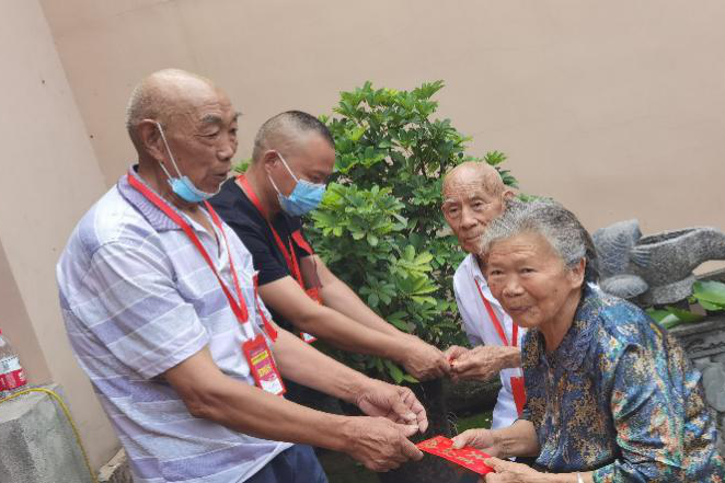 在活动现场,大家为90岁以上老人送上慰问金,祝老人们健康长寿,为今年考上本科大学的学生发放奖品,祝他们学业有成,鸿图大展,成为对国家有用的人才。