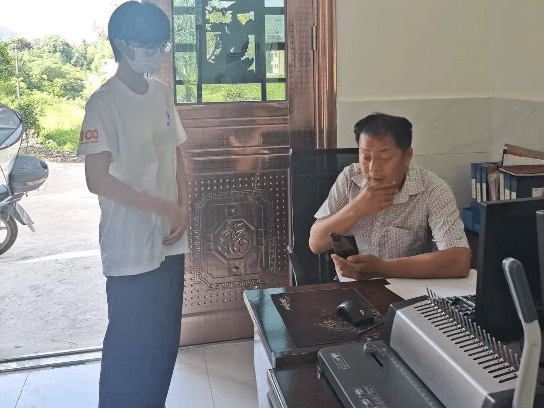 图为团队成员与陈太村书记陈国民进行交流。通讯员 康琳雨 提供