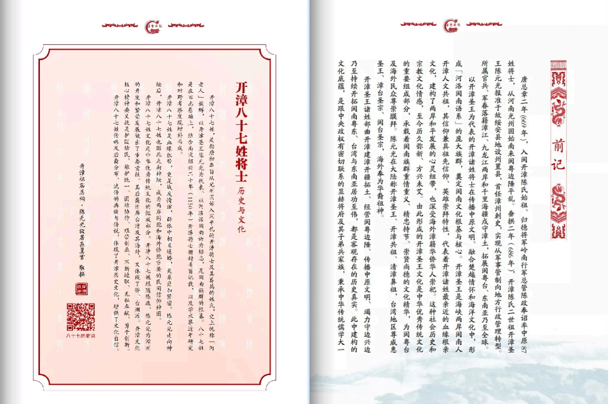 颍川陈氏·开漳圣王世家族谱:珍贵的历史文献与文化瑰宝 学院 22年11月22日 编辑 陈小龙义门陈网站创始人 取消关注 关注 私信 颍川陈氏·开漳圣王世家族谱,一部记载陈氏家族繁衍历程的珍贵文献,通过在线阅读,我们可以了解到陈氏家族的起源、发展、迁徙等历史信息。同时,陈氏文化也为我们展现了陈氏家族在历史、文化、艺术等方面的贡献和影响。这部族谱不仅为陈氏家族的后人了解家族历史提供了重要依据,也为研究家族历史和文化提供了宝贵资料。 支持电脑端、平板端、手机端,手指翻页阅读,图示1: 支持电脑端、平板端、手机端,手指翻页阅读,图示2: 微信登录,立即支付一次终身免费在线阅读,可以下载高清版印刷,支持电脑端、手机端浏览。 给TA打赏 共{{data.count}}人 人已打赏