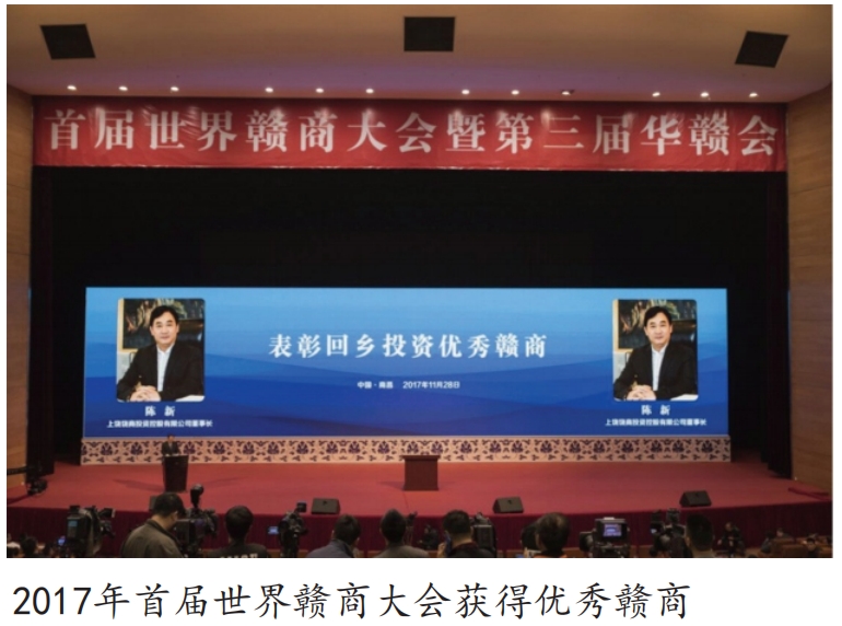 2013年,上饶提出并实施“饶商回归”工程,向在外饶商抛出橄榄枝。彼时,陈新怀一 腔回馈家乡的拳拳之心,当选为饶商联合总会会长。