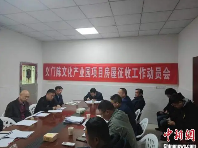 图为县委常委、统战部部长刘元勋(图中)调度义门陈文化产业园项目房屋征收工作进度(资料图) 德安县委统战部供图