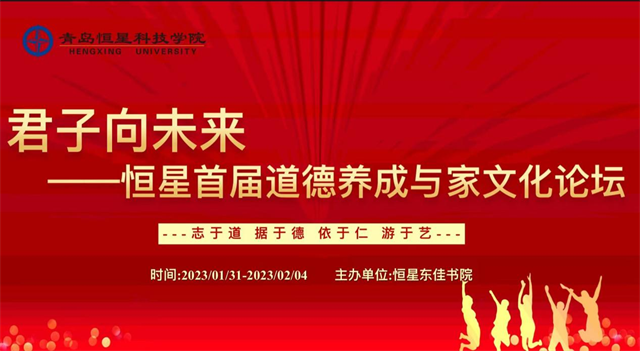 为增强文化自信、坚定使命担当,弘扬中华优秀传统文化,精心培养中华优秀传统文化的践行者和承传者,1月31日,为期5天的以“志于道、据于德、依于仁、游于艺”为宗旨的恒星首届道德养成与家文化论坛在青岛恒星科技学院开班。国家安全部原副部长、中华炎黄文化研究会原副会长高以忱,青岛恒星集团董事局主席、青岛恒星科技学院董事长陈昌金出席开班仪式。