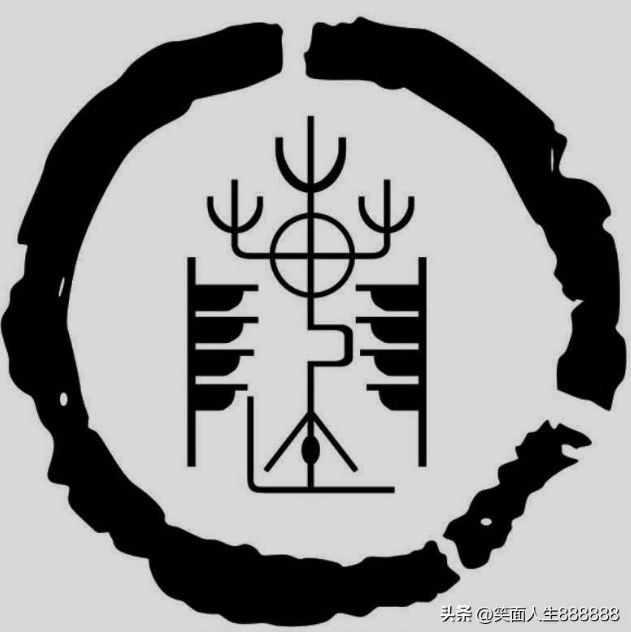 这个陈氏的图腾,其实跟上面那个陈字起源的图异曲同工之妙,中间是木在日中的东字,中间那个圆圈就是日,几个树杈的就是木,两侧的就是小山坡。