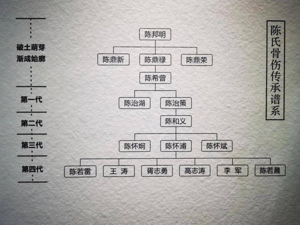 陈怀炯就是在这样的武医世家成长。他自幼跟随伯父陈和义一起习武、学医、打杂、出诊,并在1959年14岁那年成为陈氏骨科武医的第三代传人,继承陈氏武医衣钵;二弟陈怀浦、三弟陈怀斌,也先后因武行医成为陈氏骨科第三代武医传承人。