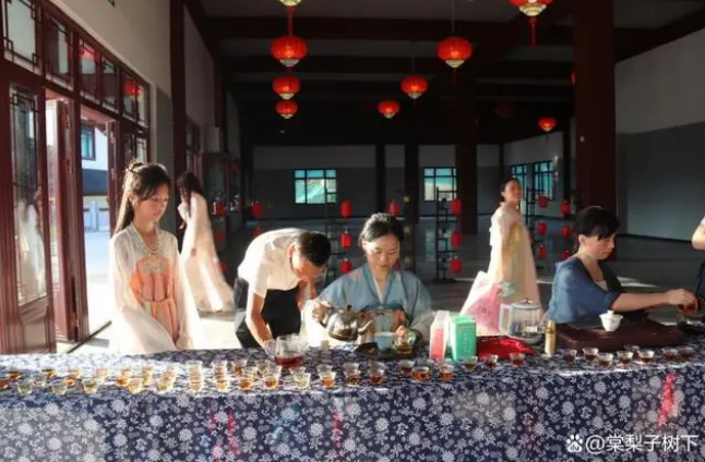 在义门陈非遗展示馆二楼有古琴沉浸式休息区,一楼有文创室茶歇点,大家逛累了,可以在这些地方歇歇脚,还可以选购自己喜爱的文创产品带回家。