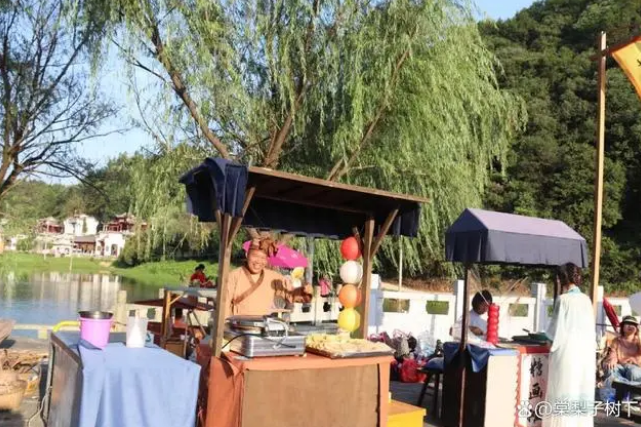 到旌表台广场的宋代集市“逛吃”。旌表台是专为宣读皇帝诏书的仪式台,首建于唐光启二年(886)。义门陈在这里先后受到唐、宋多位皇帝的旌表,共接受过27道圣旨。