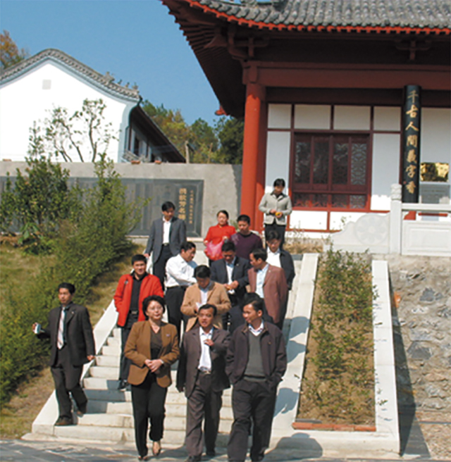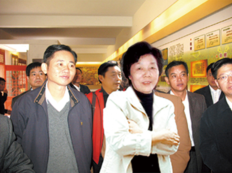 2007年11月2日江西省九江市市长王萍在德安县委赵伟书记、县政府叶心林县长、县宣传部赵和平部长等领导陪同下参观义门陈文史馆。