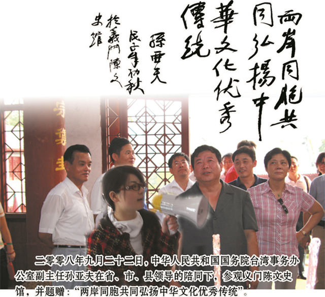 义门陈文史馆并题词,国台办副主任孙亚夫考察。