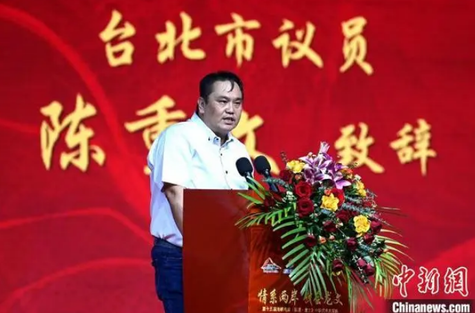 10月8日晚,第十五届海峡两岸(福建·龙文)中华武术大家练活动在福建漳州市龙文区举行。图为活动现场陈重文致辞。中新网记者张金川摄