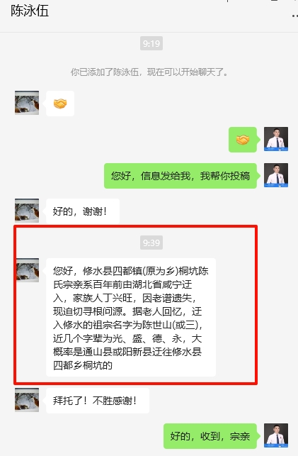 据家族中老一辈人的回忆,当初迁徙至修水县四都镇桐坑的祖先名讳或为“陈世山”,也可能因口耳相传而有所差异,如“陈三”。而近几代人的字辈排列中,明确记载有“光、盛、德、永”等字,这一线索对于确认家族传承与源流具有重要意义。