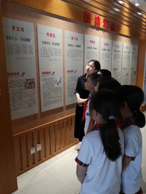 ▲学生参观义门村“义门陈”家风家训。